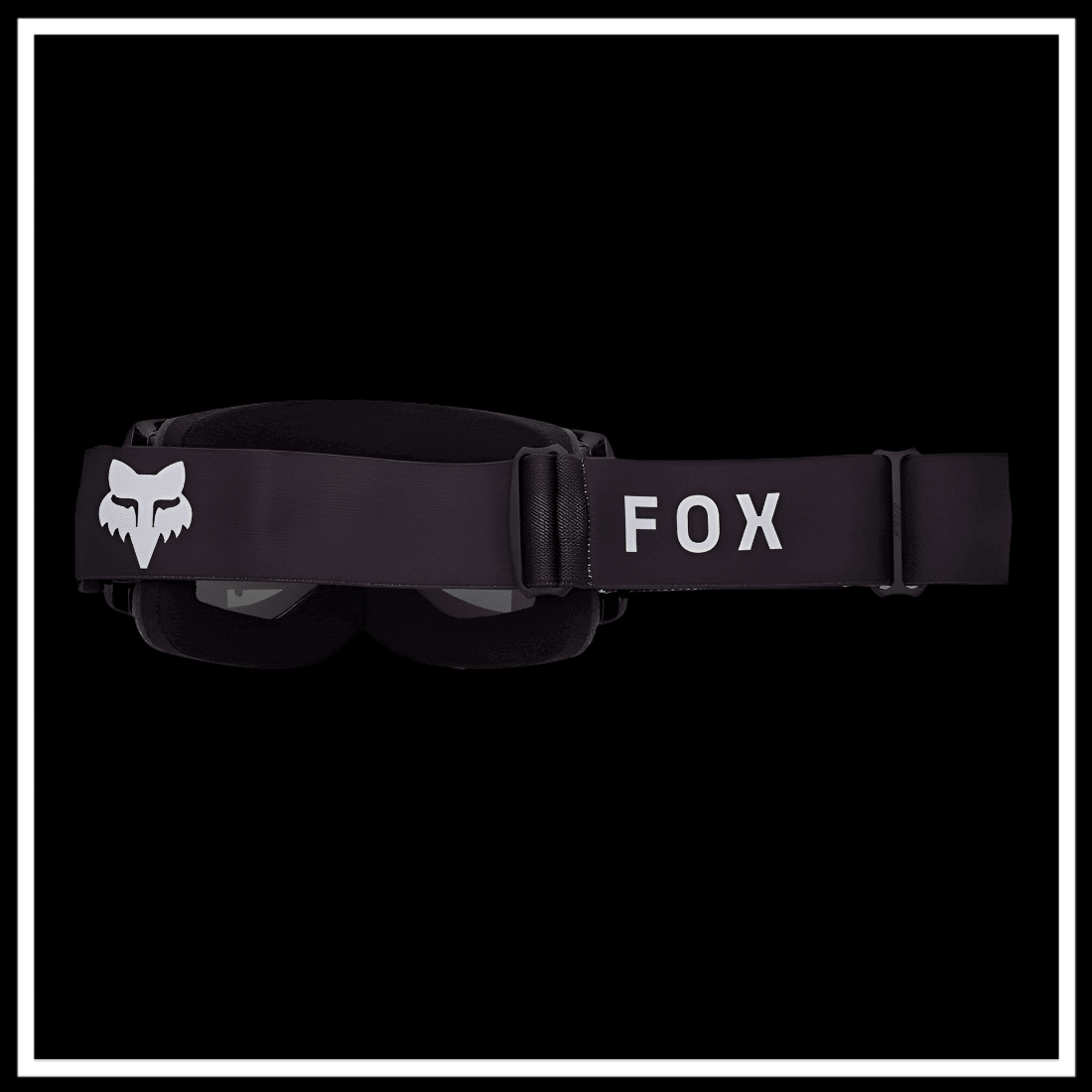 FOX RACING MAIN CORE GOGGLE with adjustable strap and logo on a black background.