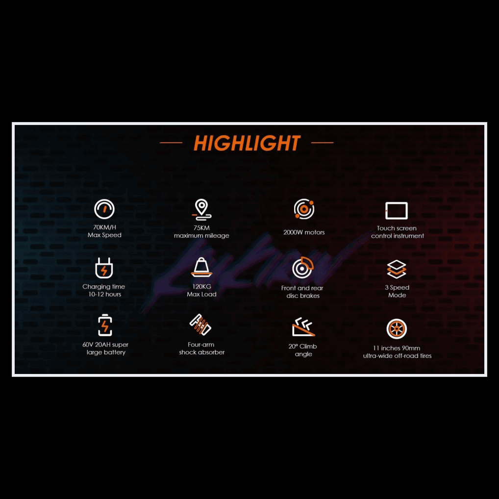 ‣ 2000W MOTOR | KuKirin G4 Max is equipped with a powerful 2000W motor, the maximum climbing angle reaches 20°and the max speed is 70KM/H. Designed for more complicated and bumpy road conditions so that you no longer have to worry about climbing and wading