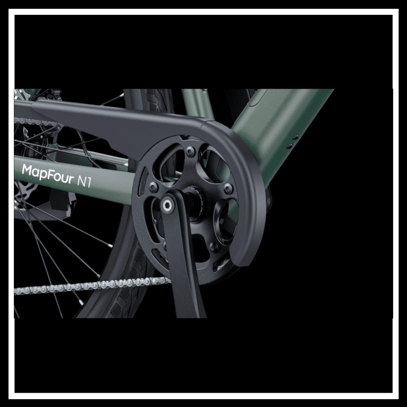 ENGWE MAPFOUR N1 AIR close-up of the crankset and pedal design for an e-bike.