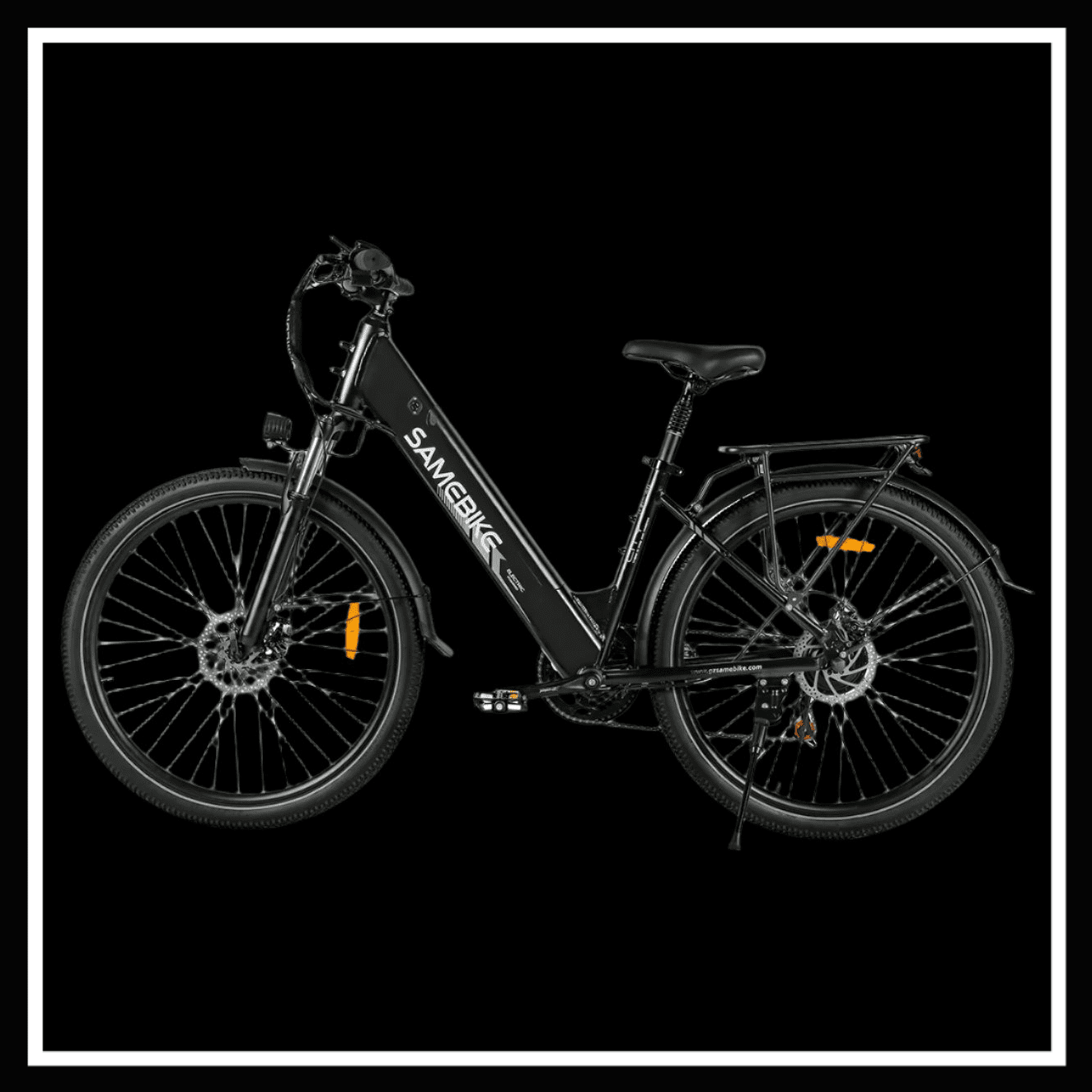 SAMEBIKE RS-A01 PRO electric bicycle in sleek black design, ideal for city commuting and weekend adventures.