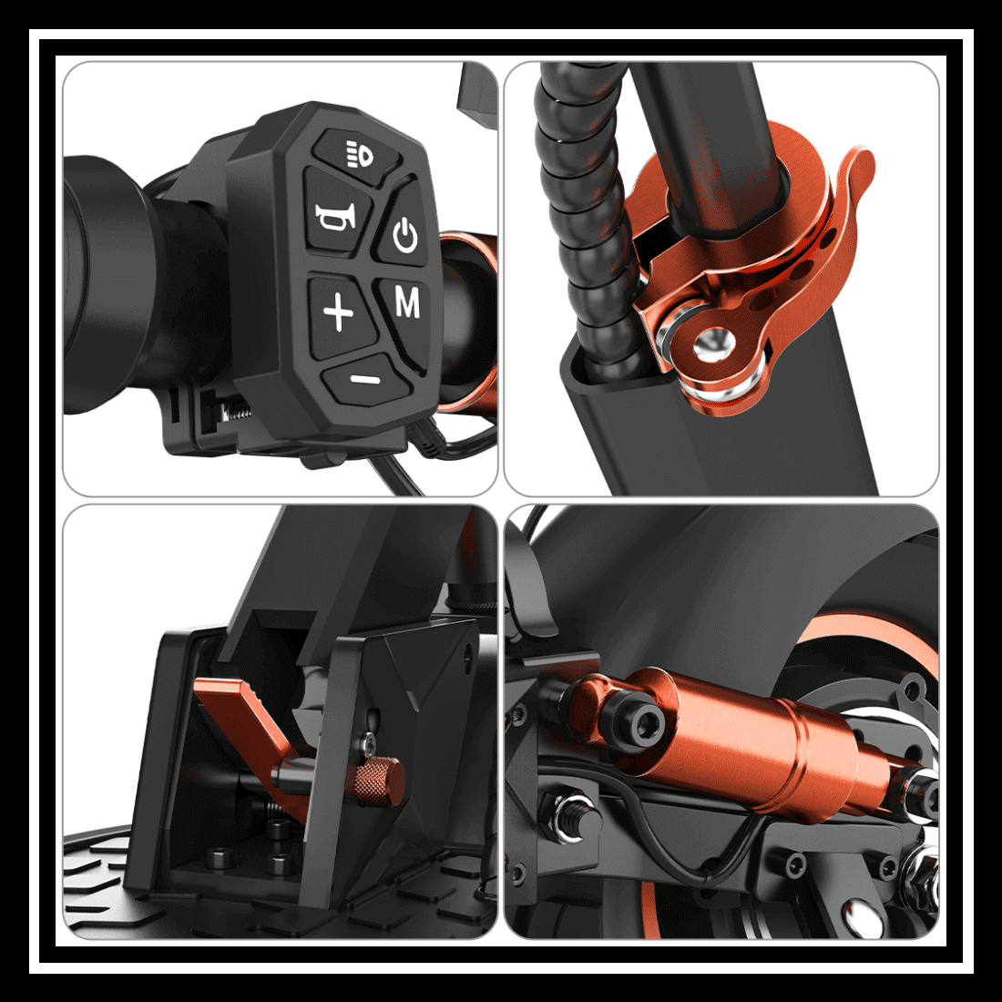 IENYRID M4 Pro S+ electric scooter is equipped with front and rear dual shock absorption systems, allowing you to conquer various terrains comfortably. The shock absorption systems ensure a smooth and comfortable ride on any surface.