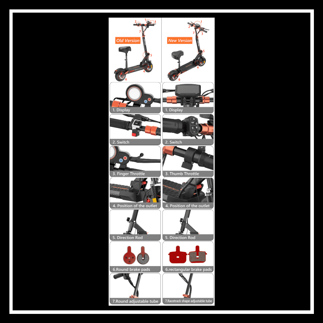 This off-road electric scooter comes with 10" all-terrain tyres, suitable for all-terrain, such as roads, paved roads, mud, grass, etc. Pneumatic tyres can also provide a more comfortable riding experience.