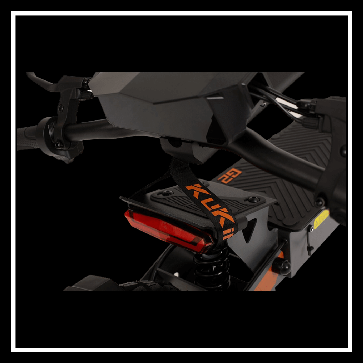 KUKIRIN G2 electric scooter detail showcasing the handle and rear light with anti-slip texture.