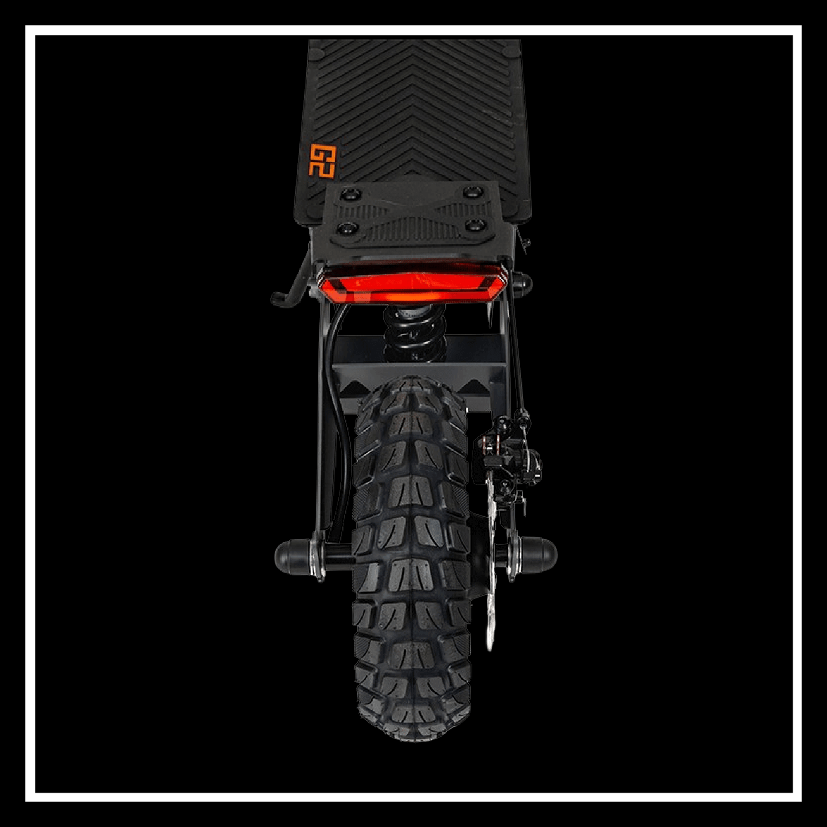 Rear view of 🇮🇪🇪🇺 KUKIRIN G2 electric scooter showcasing the tire and suspension design.