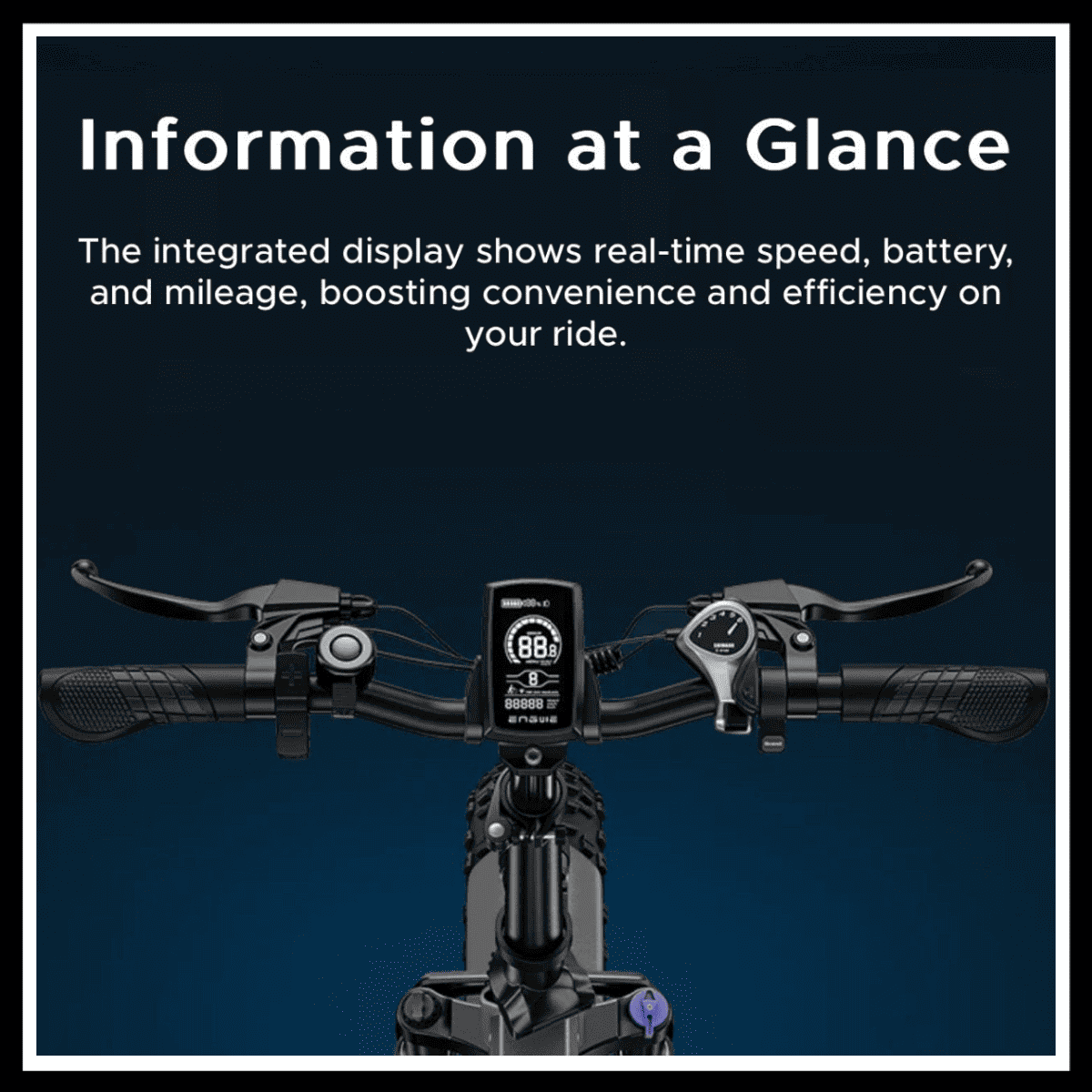 ENGWE EP-2 BOOST handlebar display showing speed, battery, and mileage for optimal ride management.