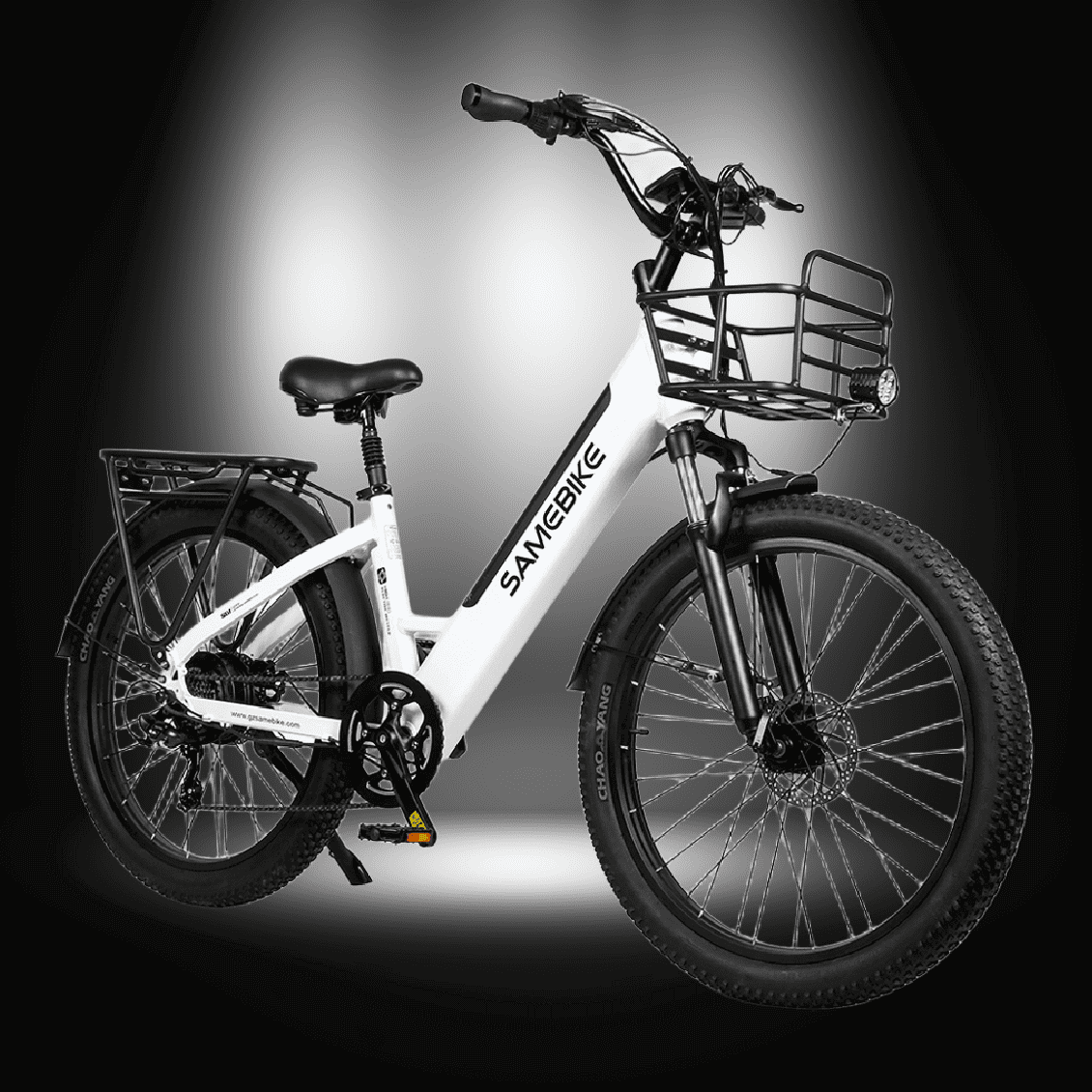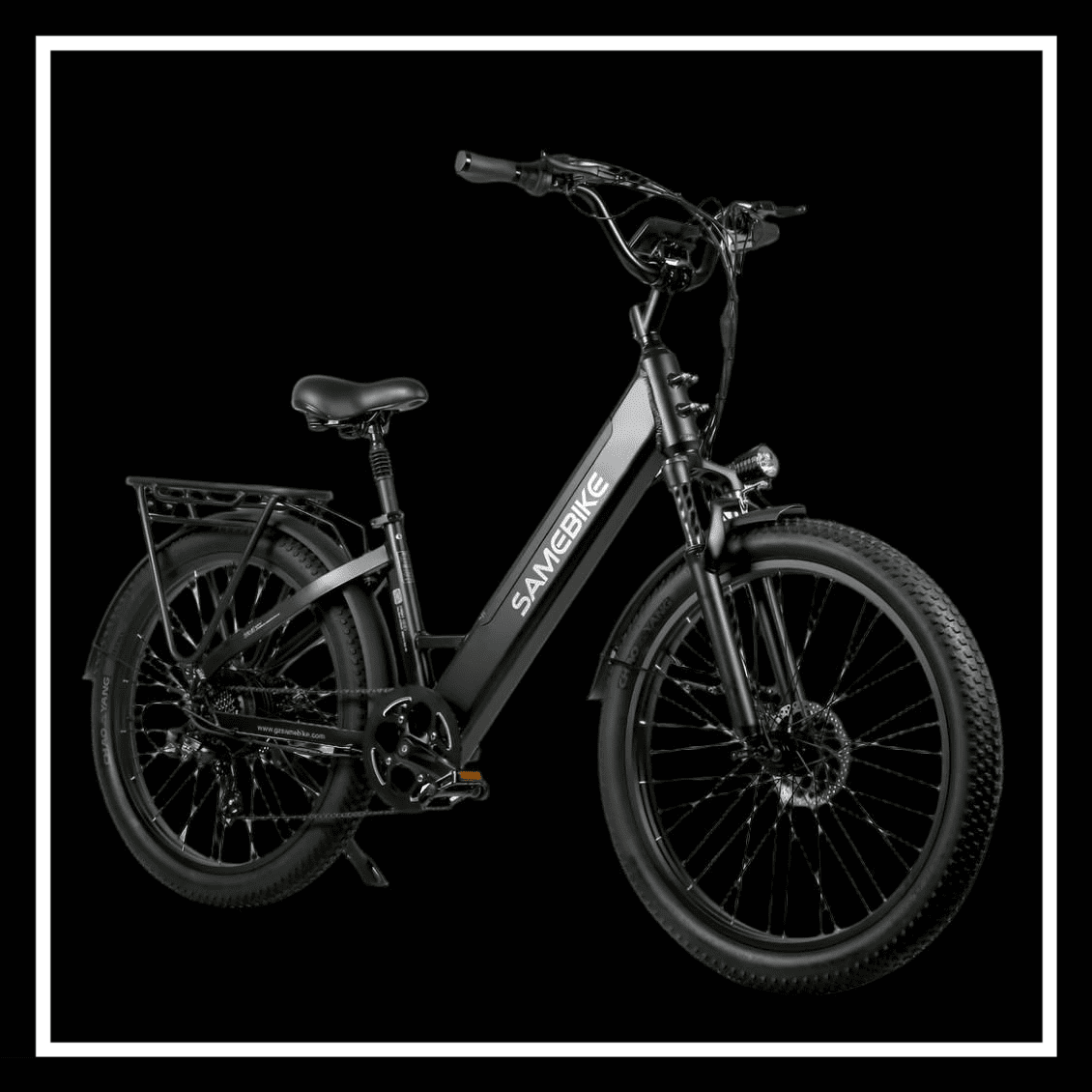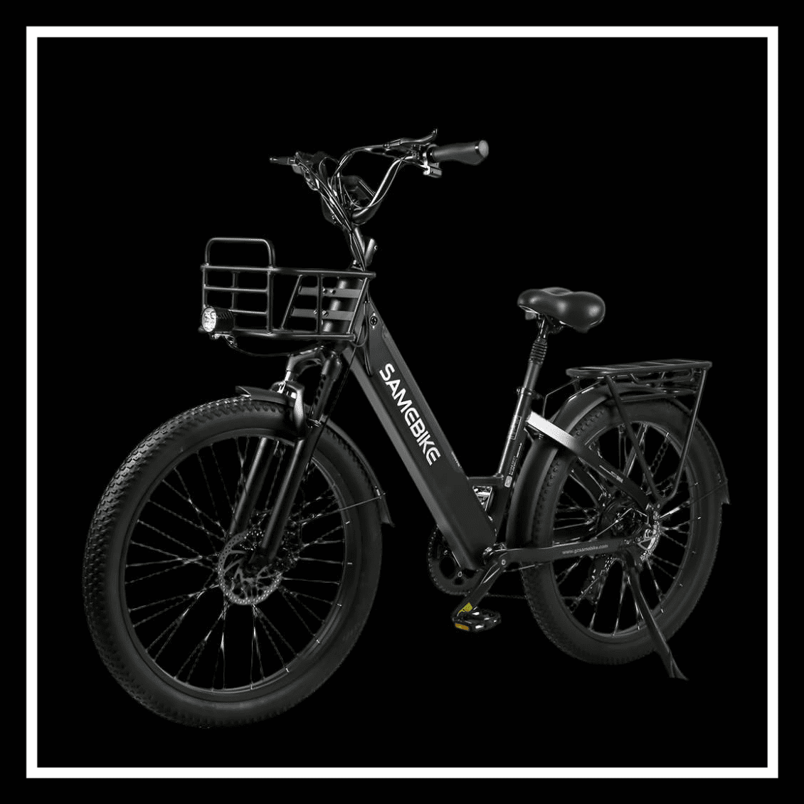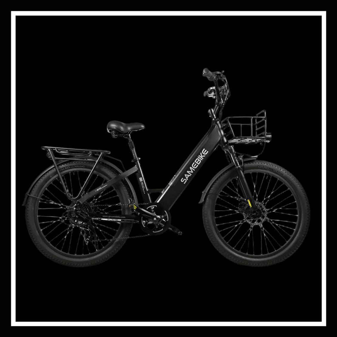 Samebike RS-A01 Electric City Bike, a powerful and versatile electric bike perfect for urban commuting and outdoor adventures. Enjoy a smooth ride with dual suspension, long-lasting battery life.