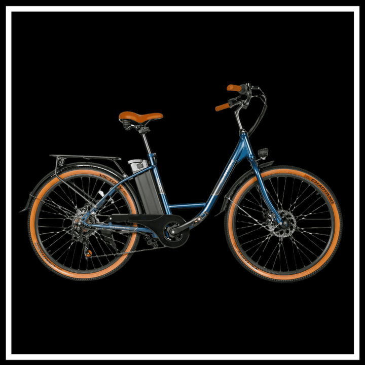 • Display: LCD screen showing speed, battery level, distance, and pedal assist mode
